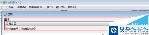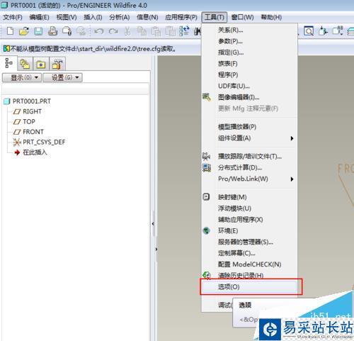3、然后打開proe軟件,進入軟件界面,然后依次點選 工具 》選項 》,如下圖操作。點擊后進入界面,點擊”當前會話“打開文件夾,找到剛才的配置文件,點選文件選擇“打開”。然后保存。最后成功的界面如下。到此已經設置成功。