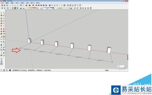 6、通過測量,可以知道5個矩形之間的距離是相同,距離10000MM。