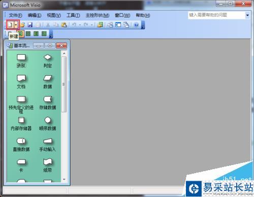 5、新建一個文件:點擊新建圖片的圖標,如圖中所示,建立一個Visio文件;