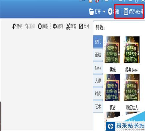 尺寸設置完成后,選擇右上角的“保存與分享”。