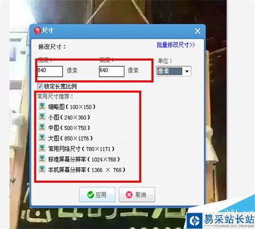 選擇尺寸,你可以直接將在推薦尺寸中選擇,或者自己輸入尺寸,盡可能將照片尺寸縮小,完成后選擇應用。