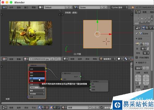 7、打開加載紋理貼圖圖片,“投影”中可以選擇方框,平展等。