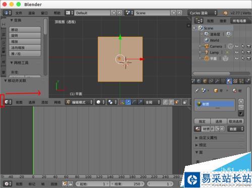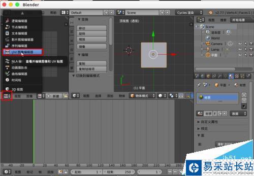 8、進(jìn)入“編輯模式”,選擇“平面”,通過按鍵“U”,彈出的菜單選擇“展開”。