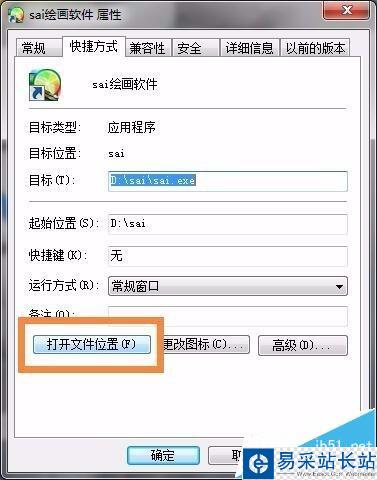 2、如果sai在運行中的先把它關掉,然后找到sai快捷方式,點擊右鍵-屬性-打開文件位置