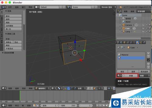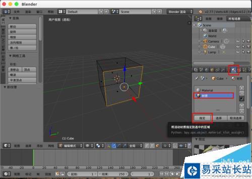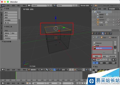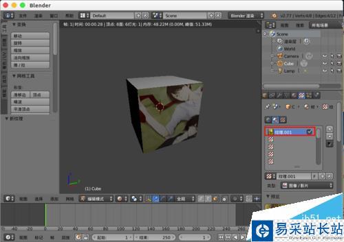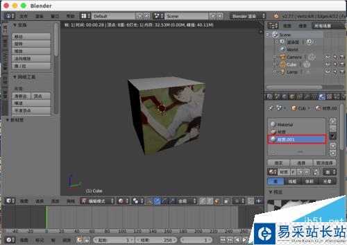 9、同樣的步驟“創(chuàng)建材質(zhì)”,“創(chuàng)建紋理”等,然后指定這個(gè)新的“材質(zhì).001”到另一個(gè)不同的面。