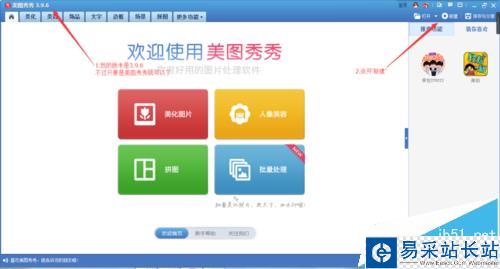 2、首先我們先打開美圖秀秀。點開‘新建’,一般在右上角,彈出‘新建畫布’窗口,選擇自定義顏色,黑純色