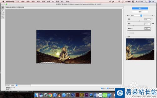 7.我們可以在動作面板中建立快照,來將處理過后的照片與之前的對比一下,可以看到這張照片并不適合拉成平面圖,所以處理照片的時候應該根據圖片所需要的藝術效果來決定怎么操作