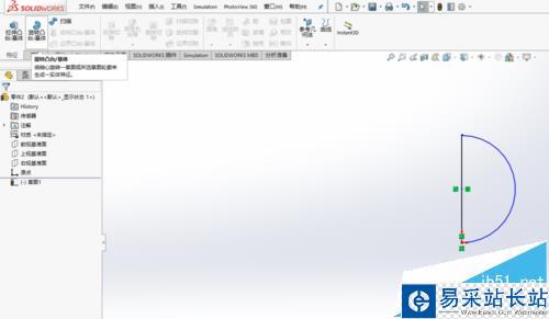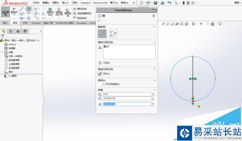 3、之后,在“草圖”選項卡中選擇“圓”命令,并選取上一步繪制的直線中點為圓心,以該直線長度一半為半徑繪制圓。
