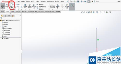 2、在“草圖”選項卡中選擇“直線”命令,并在草圖中繪制一條豎直的直線
