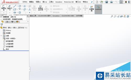 1、打開SolidWorks,這里采用的是SolidWorks2016,其它的版本,也大同小異,可以類推。打開之后,選擇“前視基準面”,之后選擇“草圖”-“草圖繪制”。