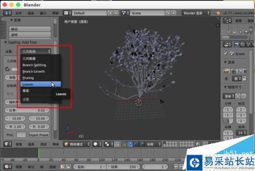 6、頂部的“設置”中勾選各個選項,就可以對樹木的枝干樹葉等進行細部的設置,完成自己需要的樹木模型。