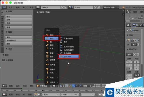 3、shift+a鍵,選擇“曲線”--“Add Tree”。