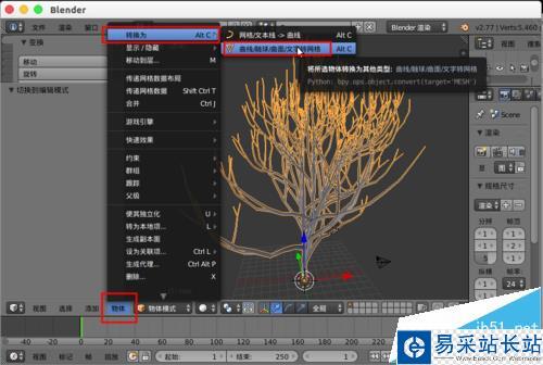 7、完成后“物體”--“轉換為”--“曲線/融球/曲面/文字轉網絡”,這樣才會生成可編輯的模型。