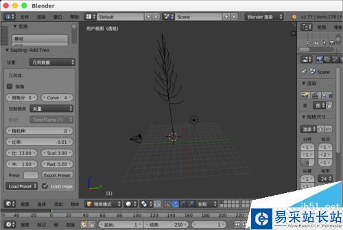 場景中需要用到樹木模型,blender創建樹木模型還是很方便,只需要打開內置的插件很簡單就可以生成簡單的樹木模型。