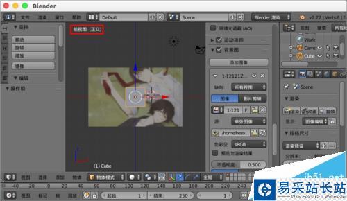 5、其實(shí)我們只需要按“數(shù)字鍵盤的1”切換到“前視圖”,然后我們?cè)侔?ldquo;數(shù)字鍵盤5”切換到“前視圖(正交)”就顯示背景圖片了(左右頂?shù)恼灰晥D也可以)。