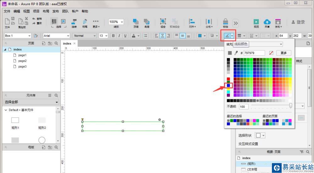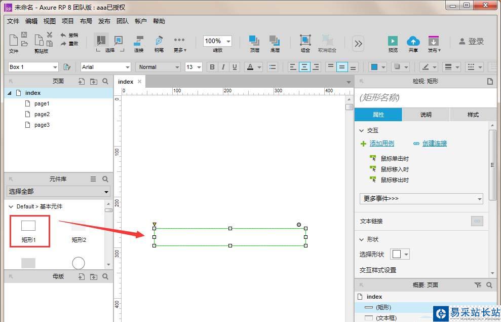 3、文本框隱藏之后,再從元件庫中向面板中拖入一個帶有邊框的矩形
