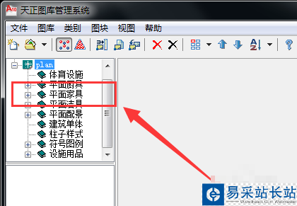 5、我們打開了“plan”選項以后,然后在里面選擇“平面家具”選項打開,如下圖所示。
