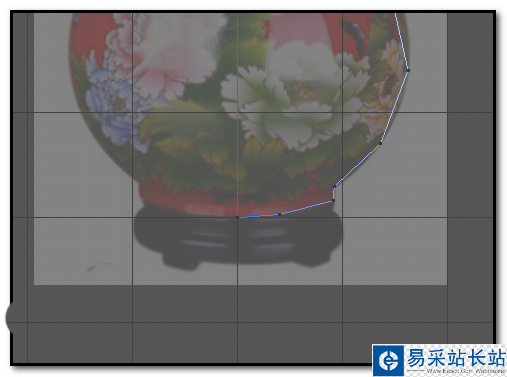 4、然后,再往下操作,在花瓶身這里,有一個(gè)大的彎度,我們緊貼著瓶身隔一段距離落下一個(gè)錨點(diǎn),先不調(diào)弧度。最后落下的一個(gè)錨點(diǎn)要在中心點(diǎn)上。如圖中所示。