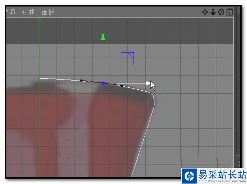 5、我們只描繪花瓶的一邊即可,按下E鍵,結(jié)束畫筆。接下來,我們調(diào)節(jié)樣條線的弧度;放大視圖,按E鍵,移動(dòng)工具,鼠標(biāo)點(diǎn)下目標(biāo)錨點(diǎn),如圖中所示,再右擊,彈出菜單點(diǎn):柔性插值。錨點(diǎn)之處本來比較硬的,現(xiàn)在有了弧度了。在第一個(gè)錨點(diǎn)與第二個(gè)錨點(diǎn)之間,也不夠弧度,我們可以在這里添加一個(gè)錨點(diǎn),把樣條線提上一點(diǎn),
