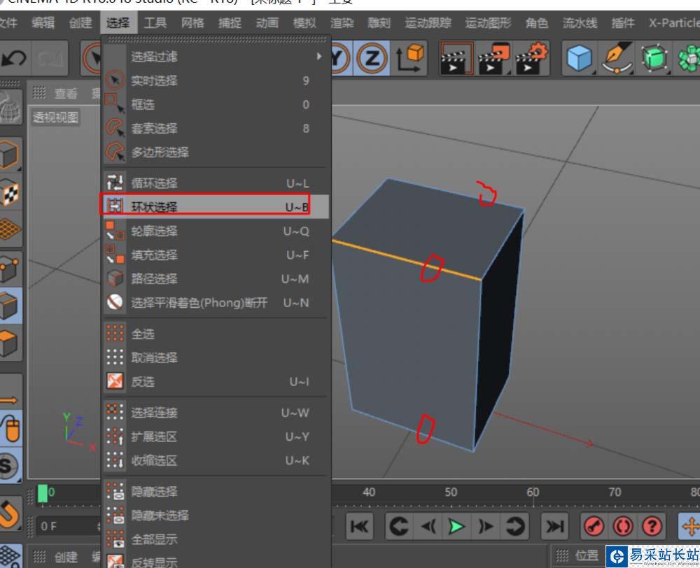 2、用環(huán)狀選擇(UB),為立方體的一組邊加一條中間線。