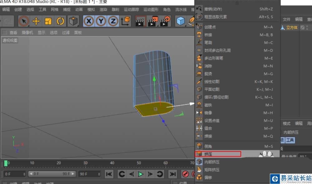 4、對底部進行擠壓,分別先用內部擠壓出壁厚,再用擠壓向上建出底部的凹位。