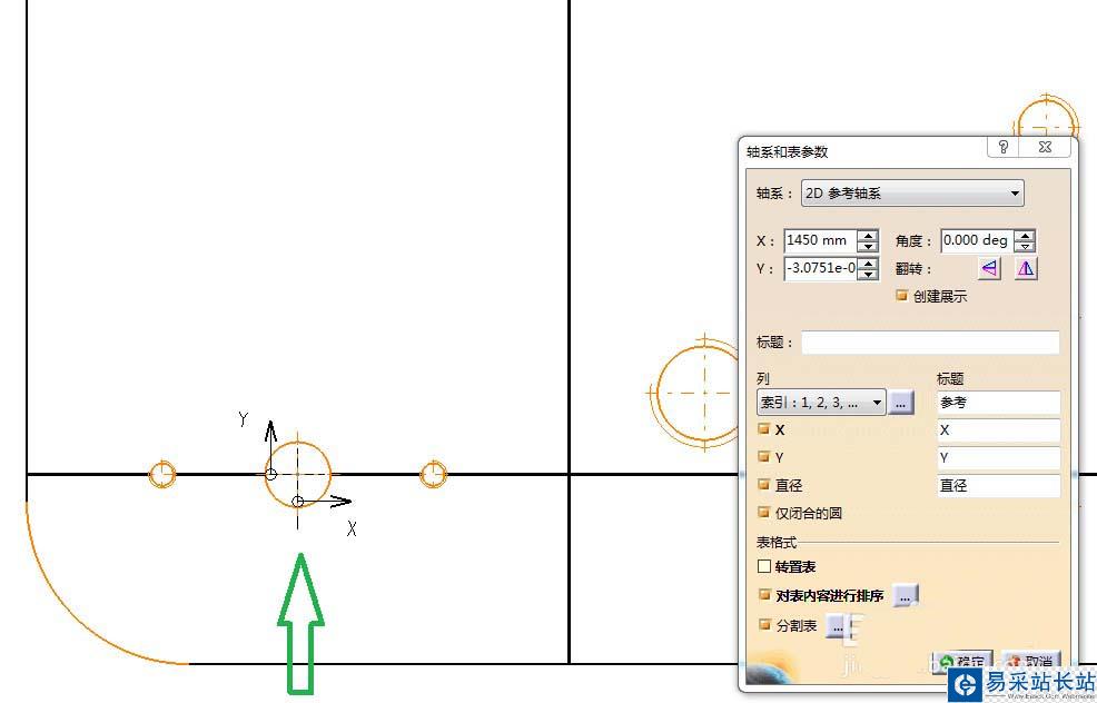 6、選中一個基準孔,選擇其軸線作為X軸與Y軸,然后點擊“確定”關閉“軸系和表參數”對話框。