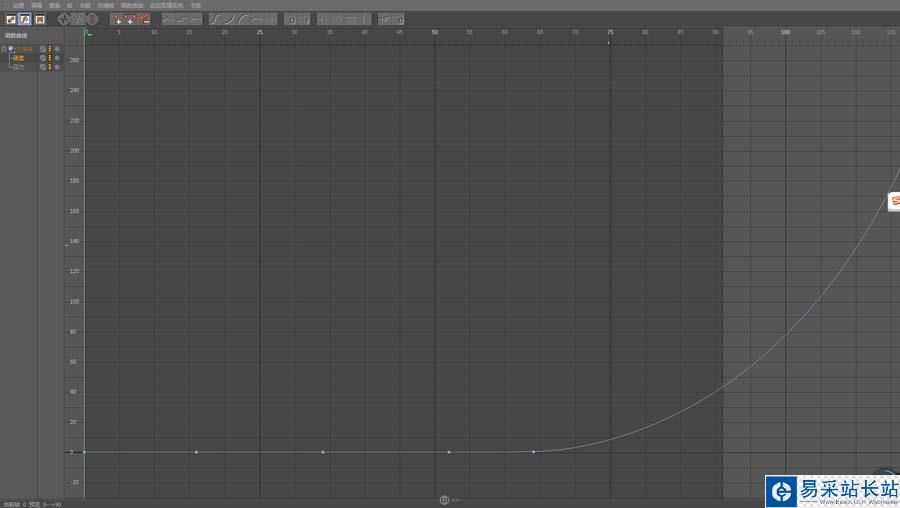 5、右鍵文本調出時間線,調節時間線曲線,讓動畫的變化先平緩后激烈。