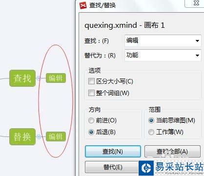 以上就是xmind思維導圖中查找和替換功能的使用方法,希望大家喜歡,請繼續關注錯新站長站。