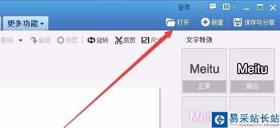 1、首先在電腦上打開美圖秀秀,然后點(diǎn)擊右上角的“打開”按鈕。