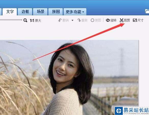 2、選擇我們要裁剪的照片文件,打開照片后點(diǎn)擊右上角的“裁剪”按鈕。