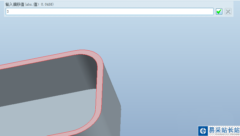 5、根據系統提示輸入邊到拔摸曲面的距離,即“唇”的寬度,操作過程如下圖所示。