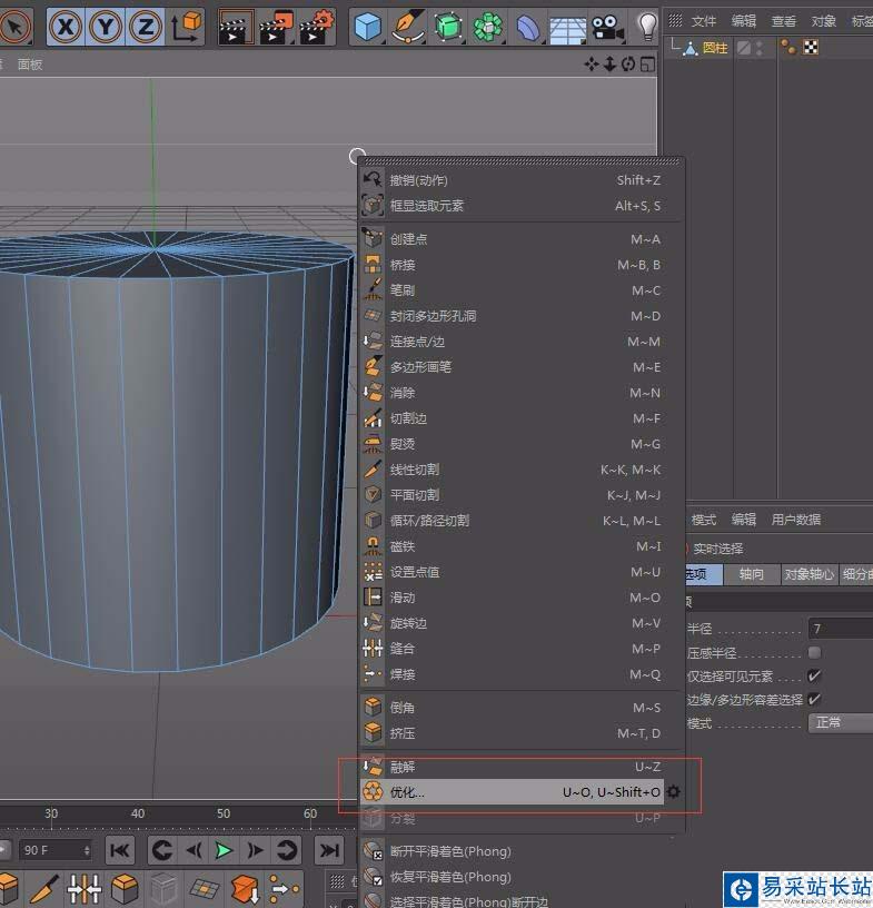 3、空白處點右鍵(快捷鍵:U~O)把對象作優化處理。