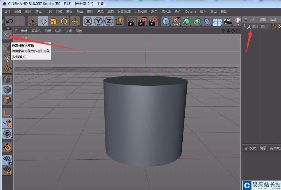 2、把圓柱轉為可編輯對象(快捷鍵:C)