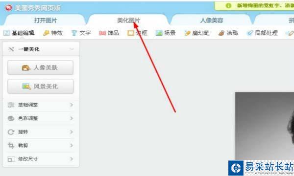 2、在窗口最上方選擇“美化圖片”的命令按鈕。