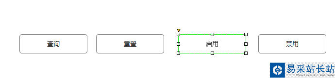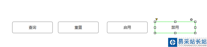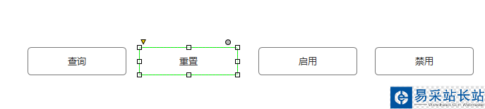 2、接著,修改Button上的內(nèi)容描述,分別為查詢、重置、啟用和禁用,這分別代碼它們的功能作用,如下圖所示: