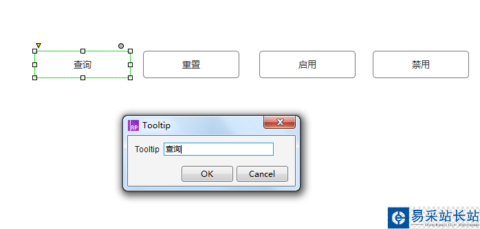 3、選中“查詢”按鈕,鼠標右鍵選擇“Tooltip”,點擊之,就會彈出設置Tooltip窗口,分別設置對應的標題,完畢后,點擊確認,如下圖所示: