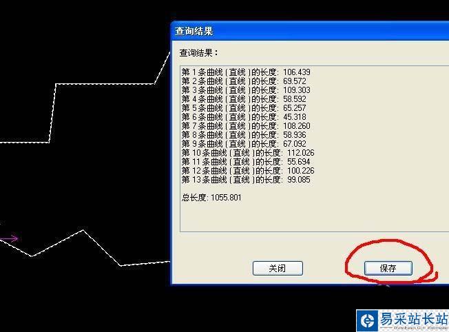 3、這時候光標變為小方框,選擇需要測量的線段。點擊后自動彈出測量的數據。數據表可以清楚的看到每個線段的長度,總長度都在內。