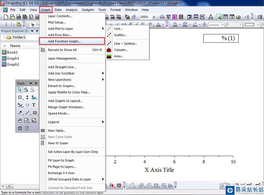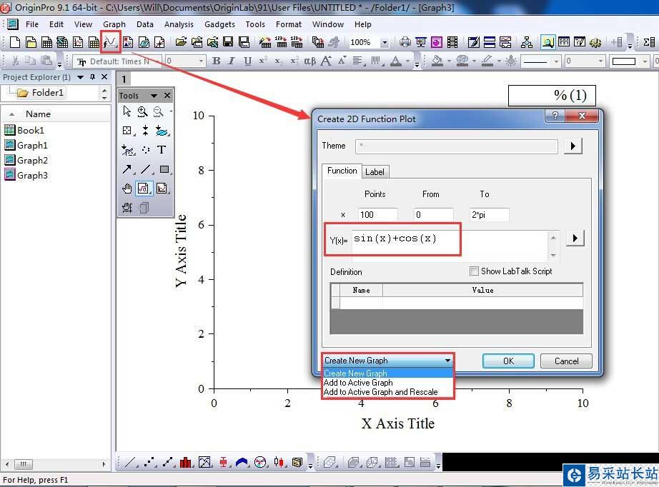 使用originpro9.1怎么進(jìn)行函數(shù)繪圖?方法是什么?Origin提供了函數(shù)繪圖功能,函數(shù)可以是Origin內(nèi)置函數(shù),也可以是Origin C 編程的用戶函數(shù),通過函數(shù)繪圖,可以將函數(shù)的圖形方便地顯示在圖形窗口中。與Origin 9.0之前的版本相比,Origin已經(jīng)取消了“New Function”的選項(xiàng),所以接下來小編將從:在圖形窗口繪圖、在函數(shù)窗口繪圖和從函數(shù)圖形創(chuàng)建函數(shù)數(shù)據(jù)工作表3個(gè)方面介紹Origin 9.1函數(shù)繪圖,一起去了解一下吧。