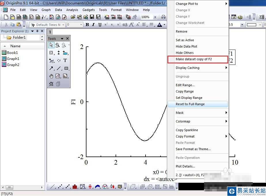1、在上面的圖中曲線上用右鍵單擊“Make dataset copy of FX”,如圖所示。