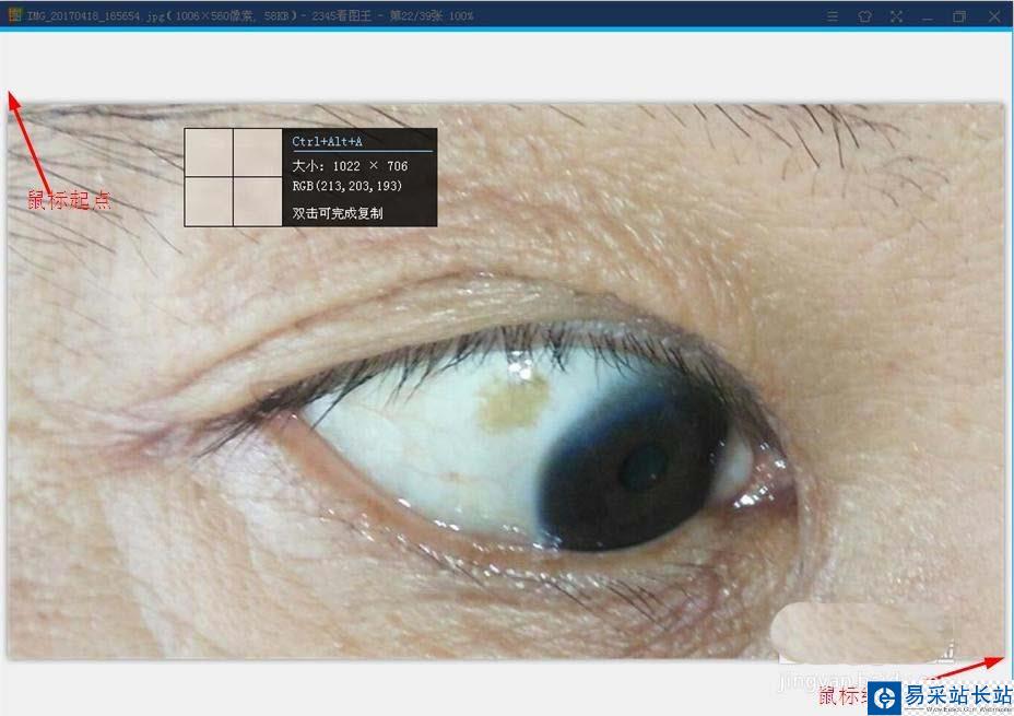 3、然后就確定要截取的整張圖片的鼠標拖動起點和終點。如下圖示。