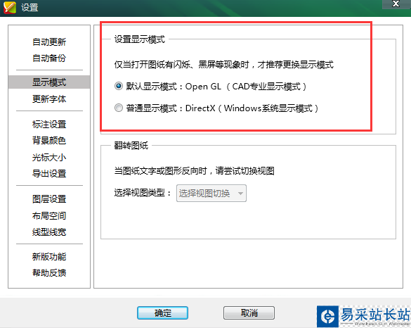 4、之后根據自己的需求選擇對應的顯示模式即可。另外若是圖紙文字或者圖形反向時,可以在這里通過切換視圖類型來進行調整。