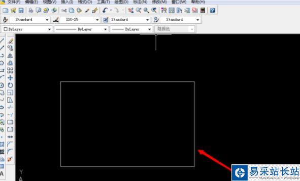 1、首先我們在CAD里邊畫了一個矩形,我們就在這個矩形中填充顏色;
