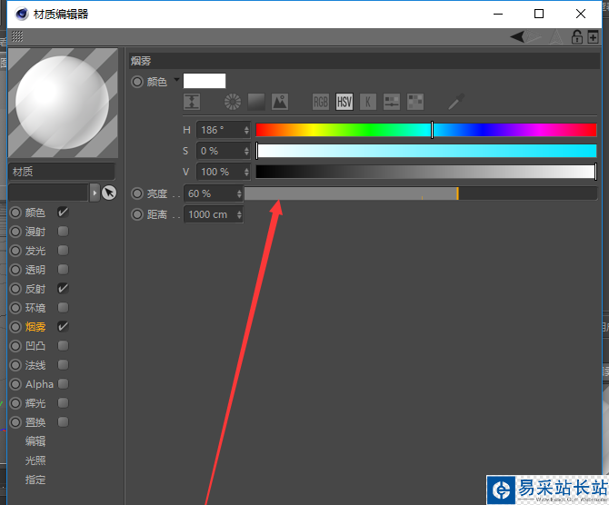 5、修改煙霧屬性的亮度,可以避免煙霧色太重,這樣就可以漏出最底層顏色--顏色屬性中的色彩;