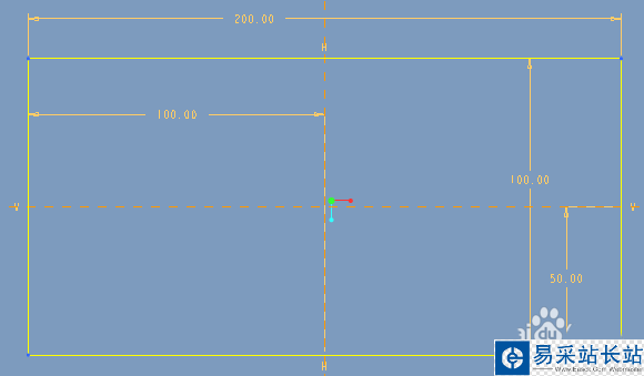1、草繪。草繪如下的矩形,尺寸供參考。