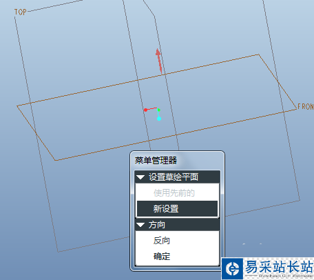 3、系統(tǒng)彈出如下的“設(shè)置草繪平面”菜單管理器和“選取”對話框。