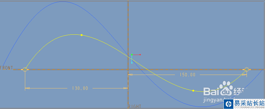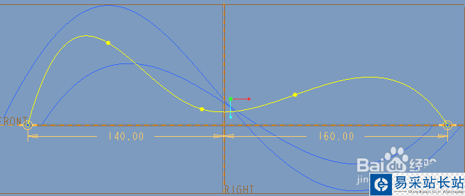 3、在DTM1面上隨意繪制一條曲線,尺寸可參考下圖,按√完成草繪。