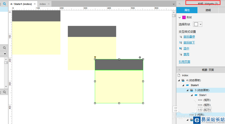 6、然后,把這個新出現的動態面板命名為“4”。ps:如果是拖入的動態面板尺寸是固定的,需要在屬性中勾選【自動調整為內容尺寸】的選項。