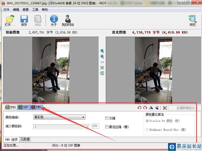 5、單擊PNG,可以手動輸入減少顏色的參數