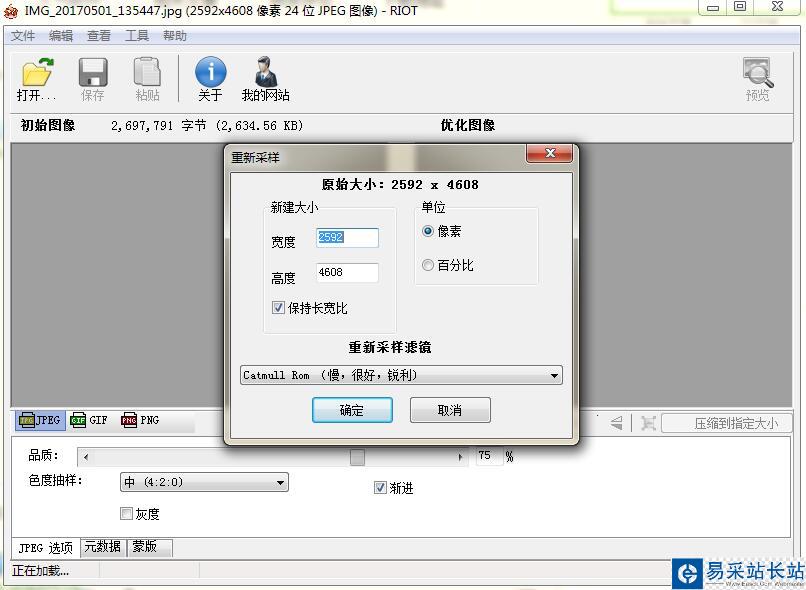 3、點擊JPEG,可以選擇品質調節、色度抽樣