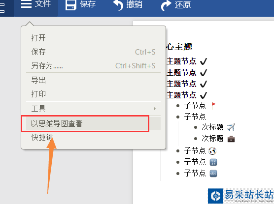 6、在文件菜單下選擇“以思維導(dǎo)圖查看”即可;